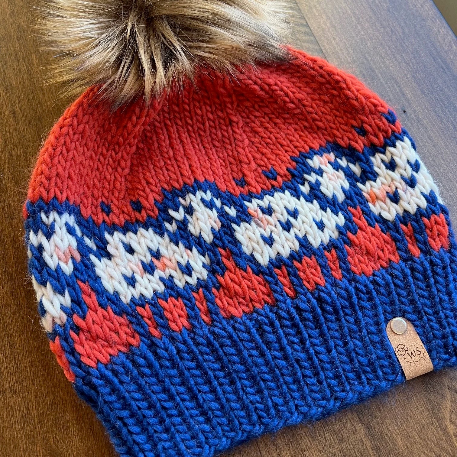 This hat was designed and hand knit by Wandering Sheep Knitting. The yarn is We Are Knitters The Petite Wool.