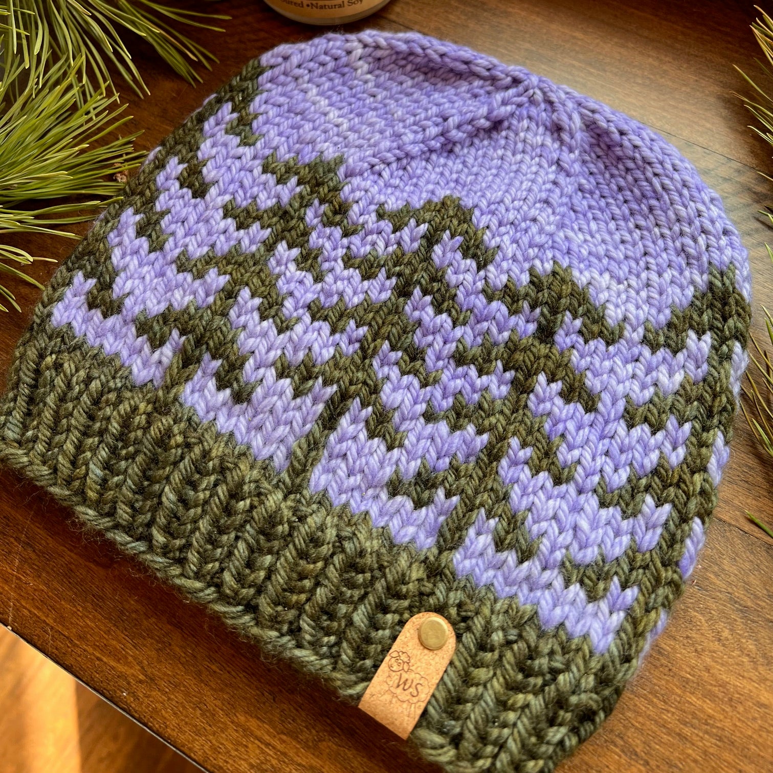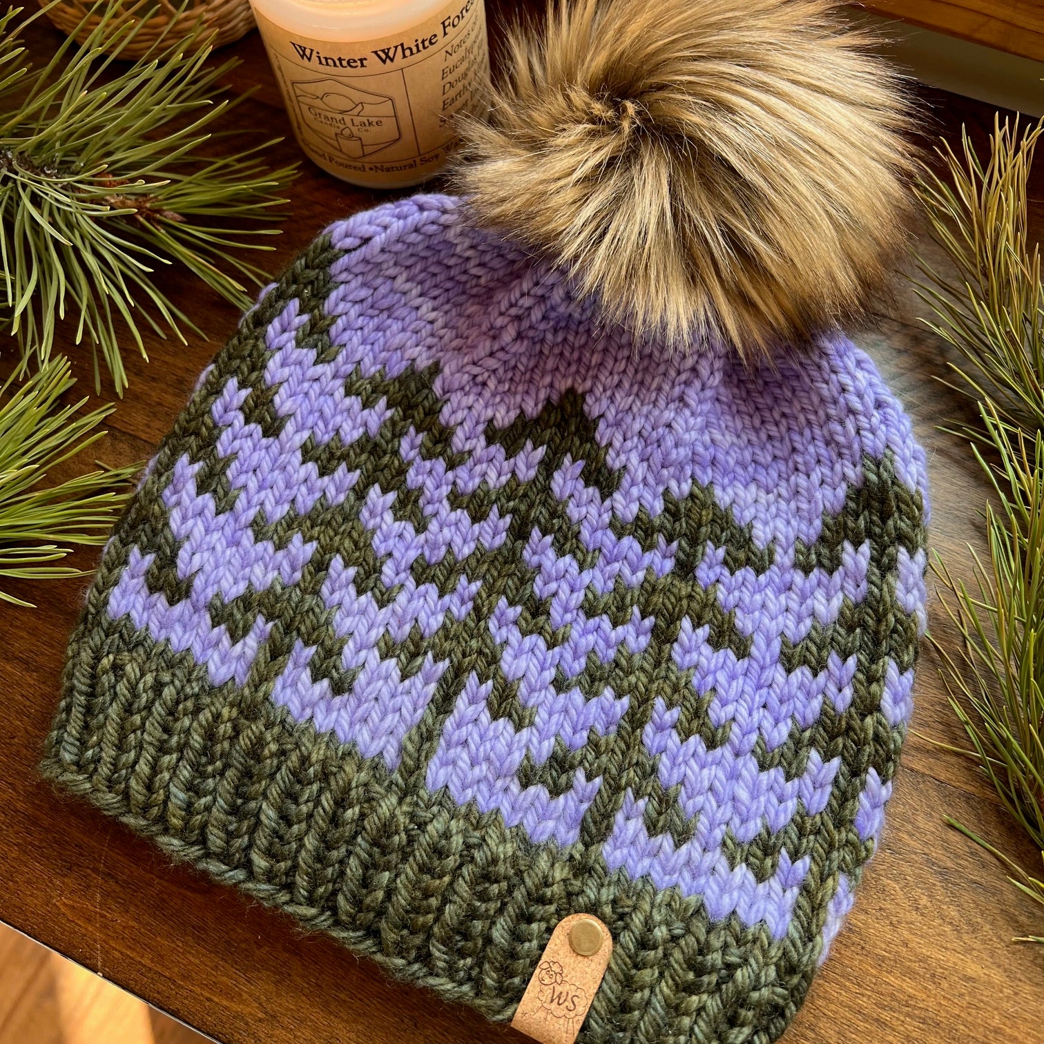 This hat was designed and hand knit by Wandering Sheep Knitting. The yarn is 100% merino wool. Hat comes with removable faux fur pom-pom.