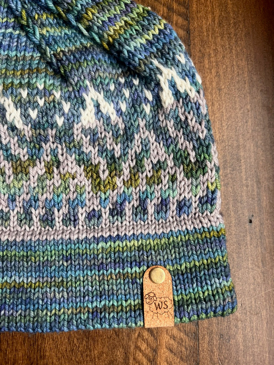 This hat was designed and hand knit by Wandering Sheep Knitting. The yarn is 100% superwash merino wool.