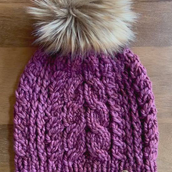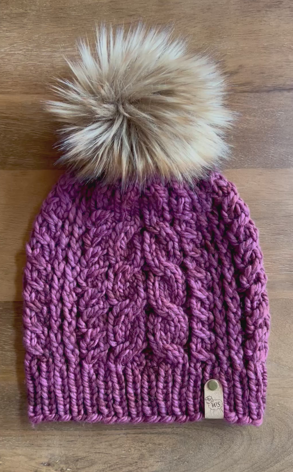 This hat was designed and hand knit by Wandering Sheep Knitting. The yarn is 100% non-superwash merino wool.