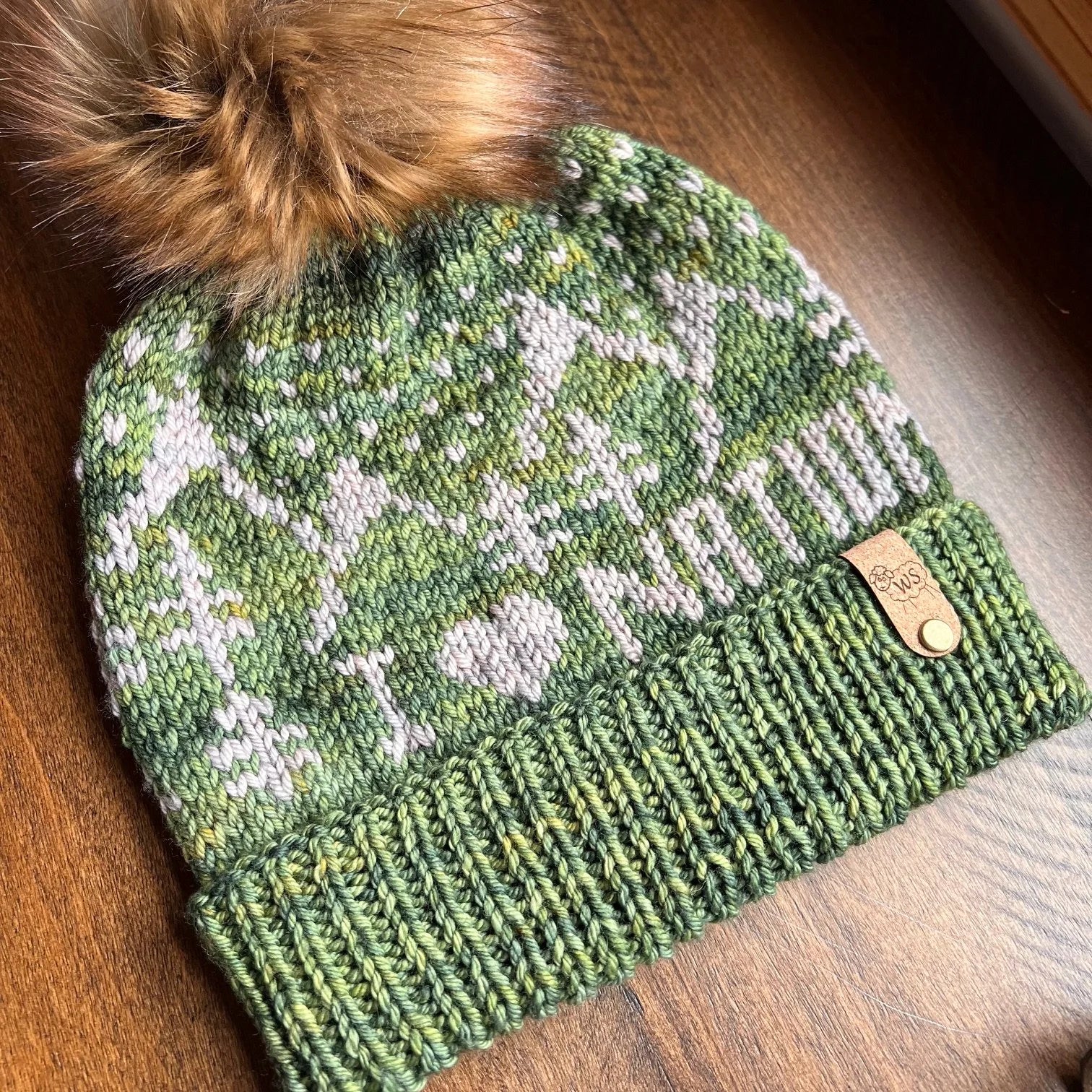 This hat was designed by Rosie Posie Knit Co. and hand knit by Wandering Sheep Knitting. It’s made with 100% merino wool (Malabrigo Rios).